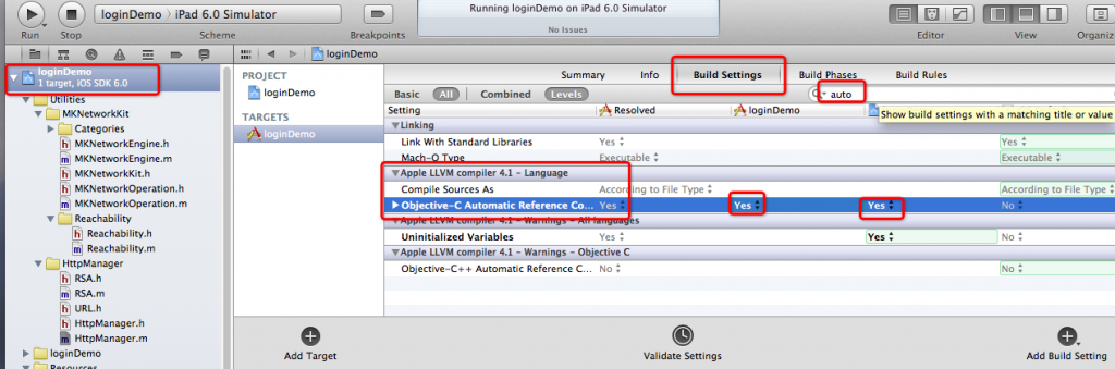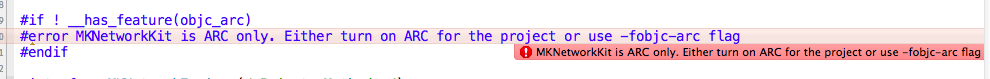 注意:由於MKNetworkKit支持ARC,我們在項目中要開啟ARC,不然會報錯