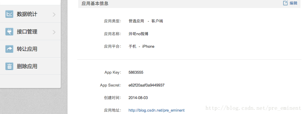 記下系統自動為該應用生成的APPKey和APPSecret,
