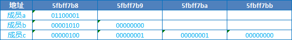 //結果:address(Type)=5fbff7b8,address(t.a)=5fbff7b8,address(t.b)=5fbff7b8,address(t.c)=5fbff7b8