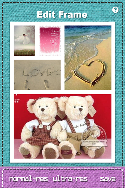 InFrame Cut 界面十分簡潔明了,你可以把幾張圖甚至十幾張圖合並為一張照片,並有1:1、2:3、4:3、3:4畫幅可供選擇。在操作時,你可以通過點擊相框中的箭頭並滑動就可以切割相框,讓你隨意設置多張照片之間的比例和調節分配照片的布局,只要你的創意足夠,你可以做出將近1000種拼圖相框。不過郁悶的是你劃分的相框越多每個部分也就越小,到最後你甚至都看不清每張圖片了,要是能多出一個能設置預覽比例的功能就非常不錯了。