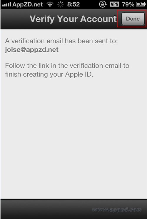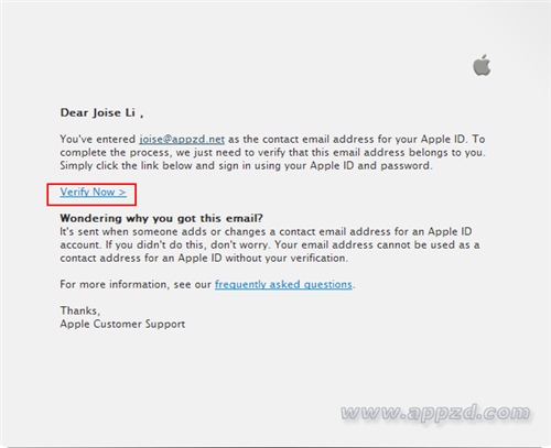 10.填寫好之後就提示驗證郵件了,打開郵箱就會收到來自蘋果iTunes Store的驗證郵件,點擊Verify Now