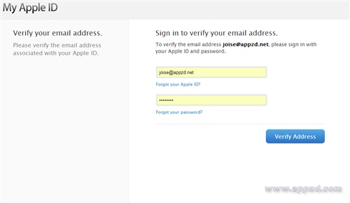 11.這時候會打開驗證鏈接,輸入剛剛填寫的郵件地址即你的Apple ID及密碼