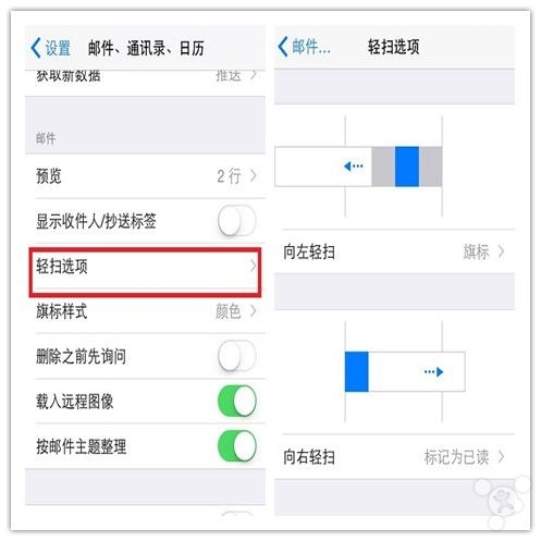 用戶可以根據自己使用 iPhone 的手勢習慣,比如你是左撇子、或者你的慣用手是右手等來設定上述手勢。還有就是如果你經常給郵件添加旗標等,那麼設定上述手勢也是非常方便的。