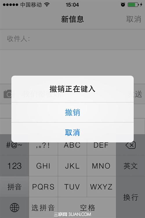 另外,短信輸入時如果你快速晃動屏幕,將會彈出一個撤消提示,提醒你是否確認撤消之前的輸入。(by sy)
