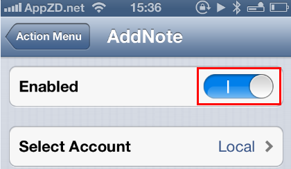 設置安裝後無需特別設置直接使用,不過要確保你的 Action Menu裡“擴展支持”選項是開啟狀態,打開 設置 ->AddNote for ActionMenu可查看狀態,