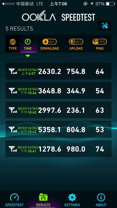就在三大運營商拿到TD-LTE牌照的當天,一件對很多用戶來說更有意義的事情悄然發生了,北京移動營業廳“官方”推出了港版iPhone 5s/5c免費升級4G的業務,這是繼廣東和深圳之後,面向4G“果粉”的進一步福利。騰訊數碼做了多區域的專門對比測試,我們手裡的這台港版iPhone 5s/5c在LTE網絡下的下載均值為4MB/s,上傳均值為0.5MB/s,最高峰值能達到8.1MB/s ,非常驚人,這是之前任何4G手機都沒有達到的最高速度。