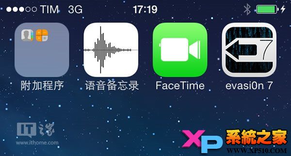 三、繼續,解鎖設備,同時點擊iOS設備桌面上的“evasi0n7”圖標。