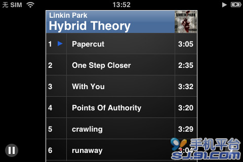 同步完成後,即可在iPhone的iPod中上看到同步上去的音樂,帶有圖片的專輯也可在播放中看到專輯圖片。