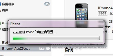 選擇了之前生成的文件之後就會開始設置設備上的運營商標識,幾秒鐘就可以了,要注意的是這個並不是恢復系統,所以不會有任何的數據丟失,不用擔心: