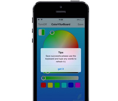 今天將要為你介紹的這款插件名為 ColorY0urBoard,這是一款全新的插件,可以讓用戶改變整個鍵盤的顏色,而不僅僅是鍵位,插件安裝後將會在主屏添加一個應用圖標,點擊進去後,插件提供了一個調色板供用戶進行配色:
