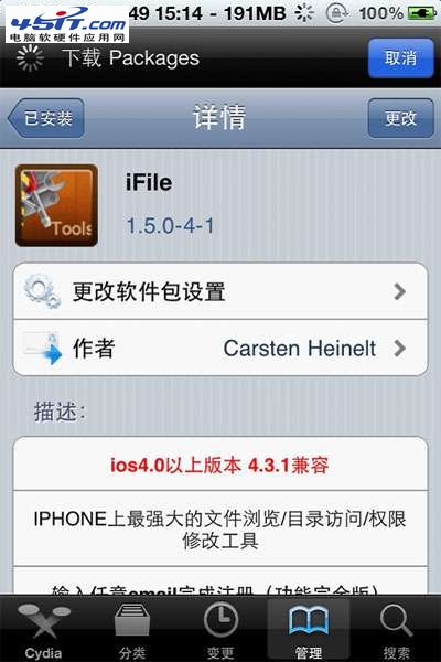 安裝iFile(我的手機系統是4.33的 安裝的iFile版本是1.5.0-4-1)