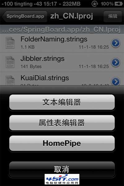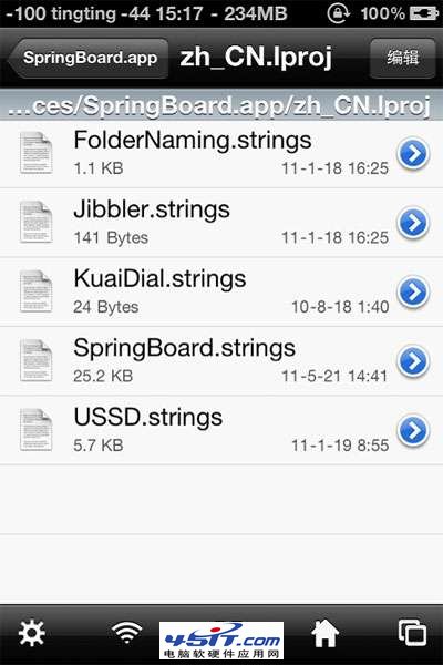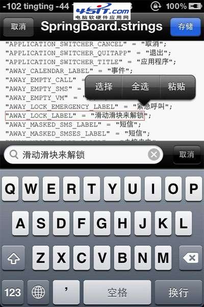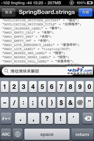 為啥我不用電腦來修改滑塊文字呢?因為SpringBoard文件用記事本打開是亂碼,所以只有借助iFile來修改。其實主題的天氣城市等等也是可以使用iFile來修改的,這個我就不在這裡介紹了。