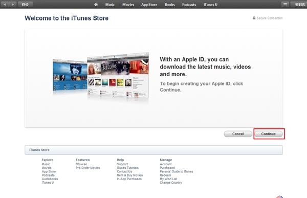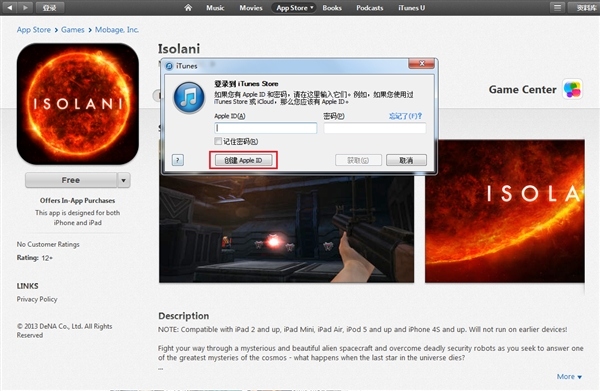 點擊Free按鈕後,在彈出的登陸框中點選“創建Apple ID”.