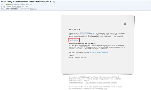第四步:驗證郵箱。填完上面的所有資料後,確認注冊,你剛才注冊所用的郵箱和備用郵箱就會收到驗證郵件。點擊“Verify Now”進入登陸賬號驗證。
