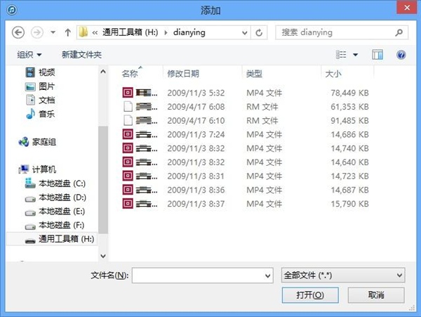 在彈出的文件目錄頁面,選擇需要添加到影視文件。
