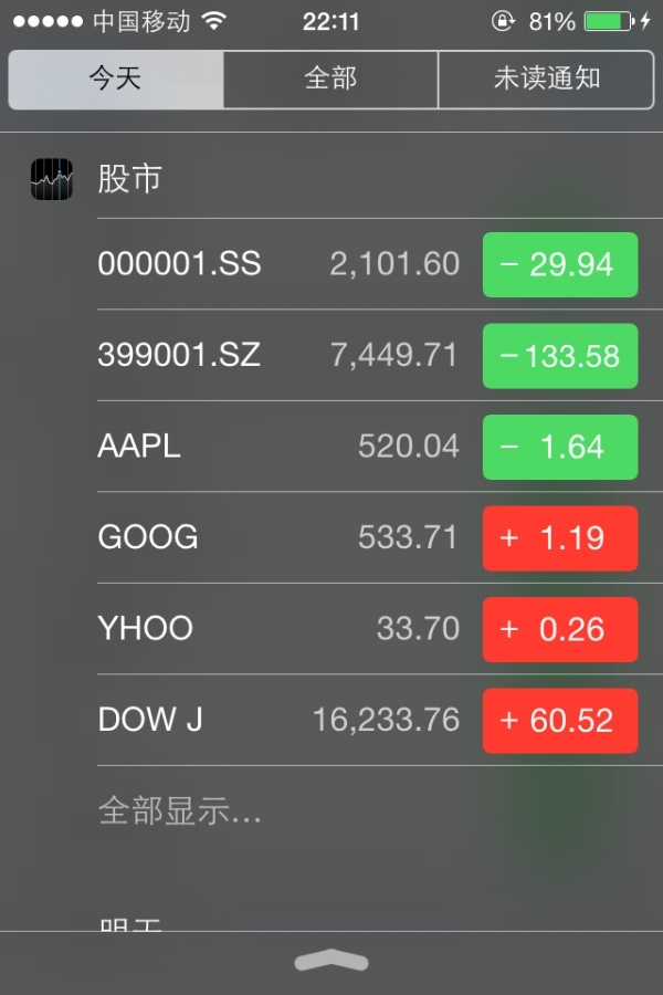在iOS7系統針對通知中心進行了強化,增加了全新的“今日”欄目,可以一目了然地了解到當天的所有事件。
