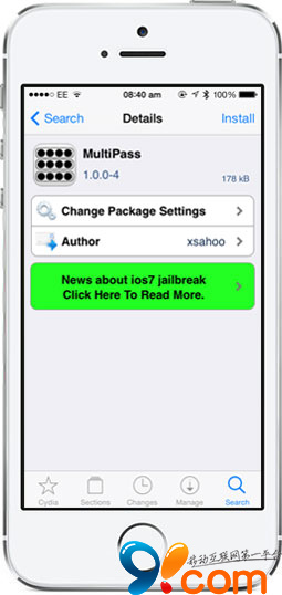 提示:如果搜索不到MultiPass,可以進入Cydia—【變更】—點擊左上角【刷新】—再搜索該插件。