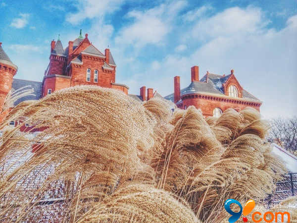 平時會經過的建築。發現這叢隨風搖擺的草,真的是很好的前景。