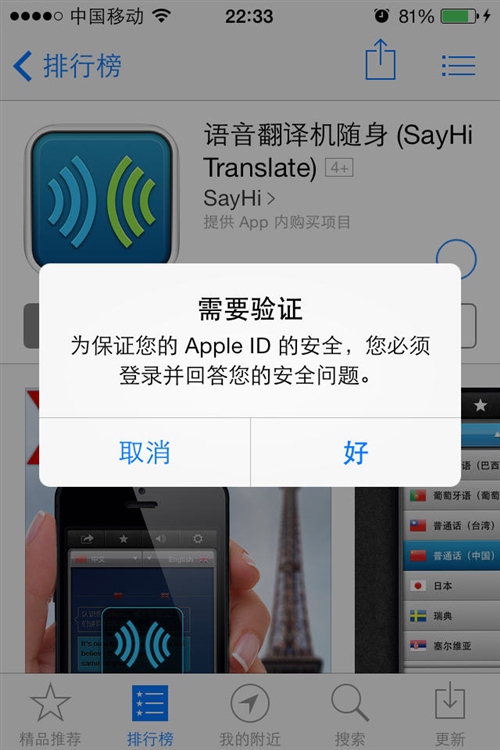 第四步:如果是初次使用“App Store”來付費購買,會提示先進行賬戶安全的驗證。