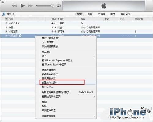 5、新的鈴聲右鍵——創建AAC版本——創建成功;