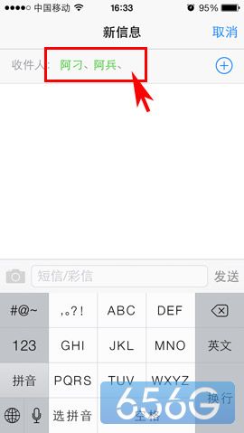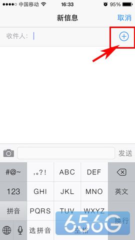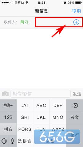 2)選擇好收件人後,系統會自動跳轉到短信編輯界面的,這裡就是被大家忽略的重點。在返回來的短信編輯界面收件欄裡並沒有像小編的一樣有“+”按鈕。其實,大家只要在收件人欄再親按一下,機會再次出現“+”的添加收件人按鈕了。(如下圖圖所示)