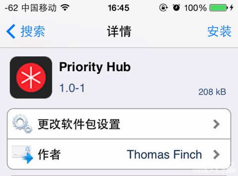 提示:如果搜索不到Priority Hub,可以進入Cydia—【變更】—點擊左上角【刷新】—再搜索該插件。
