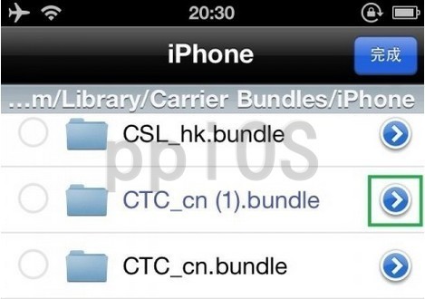 注意,若提示不能重命名 46003,則說明 /System/Library/Carrier Bundles/iPhone 目錄下已經有該文件,請先將之前的文件刪除再重命名