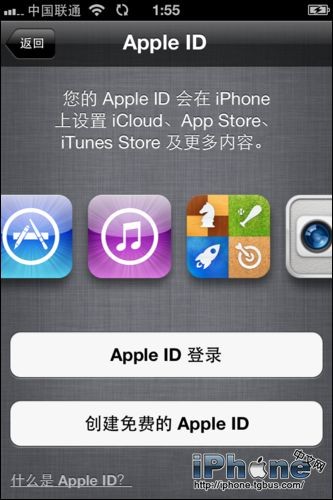 4、、登錄apple ID ,如果你沒有的話需要先注冊一個,這裡可以直接創建,也可以在電腦上創建一個免費的id;