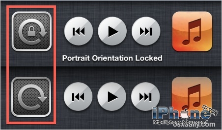 在iOS6以及更早的設備中,你可以雙擊Home鍵,召出多任務欄,之後向左滾動知道你看到這個旋轉鎖定牛。