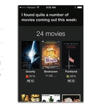 不光是老電影,Siri還知曉電影院正在上映的新電影。比如,”本周將公映那些電影?“,”給我有關《Titanic 2: The Return》的影評“,”《怪獸大學》(Monsters University)今日的播放時段?“