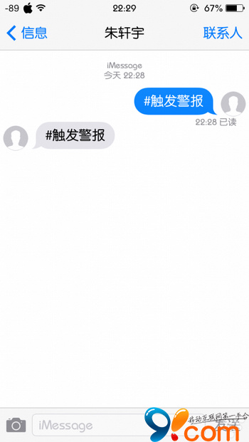 1.在手機被偷後(當然最好不要發生……),隨便用一個手機發條短信到這部手機(信息內容為你設置的內容,如果按照上面步驟所說,就應該發送“#觸發防盜”,當然你也可以設置別的文字內容)