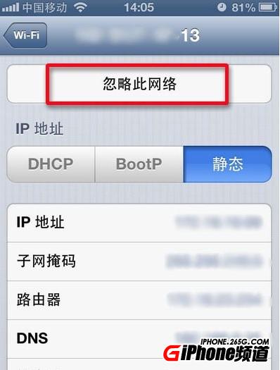 2、點擊忽略此網絡,然後回到主屏幕,重啟手機。