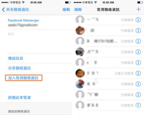 ▲ 在「電話」從聯絡人中,把不能漏失的重要聯絡人都設定到「常用聯絡資訊/個人收藏」。