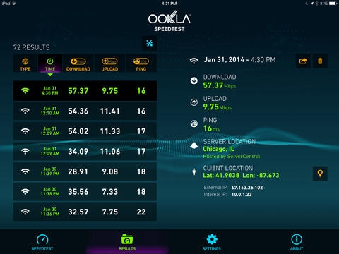 下載應用程序並運行,結束後你就可以確定你的帶寬速度。同樣,你也可以用來測試Wi-Fi的速度(截圖就是我用於測試Wi-Fi速度的),但測試LTE、3G網絡的移動寬帶速度通常是最有用的。
