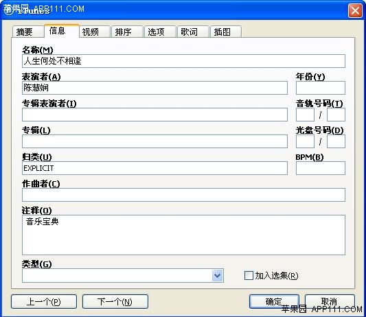 第二步,在“顯示簡介”頁面,點擊進入“信息”選項,在該頁面“歸類”中,輸入“EXPLICIT”,完成後點擊“確定”。