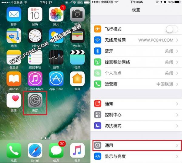 1、依次進入iPhone 7/7 Plus的「設置」->「通用」如圖所示。