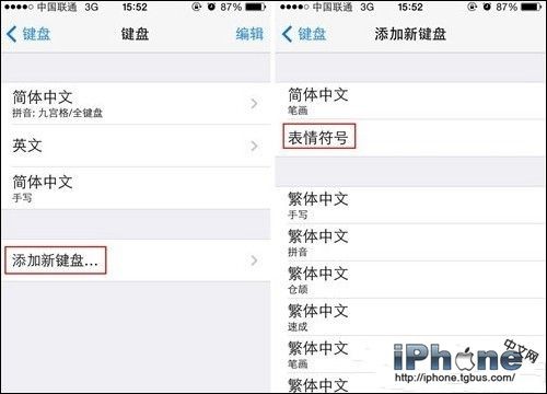 3、進入鍵盤“表情符號”設置後,這時iPhone手機中的默認表情就會顯示在切換鍵盤頁面了,如下圖所示;