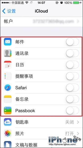 2、通過iCloud進行備份,首先我們在設置選項中選中iCloud選項,然後在iCloud選項中把我們需要備份的選項打開即代表需要備份哪些功能。