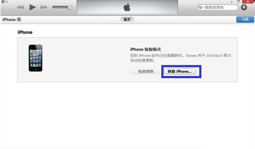 注:如果是恢復IOS7固件,請按住鍵盤上的“shift”鍵,再點擊“檢查更新”按鈕。由於我的機器已經是IOS7了,所以 iTunes 中的“檢查更新”按鈕為不可用狀態。