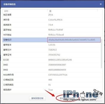 2、在彈出來的設備詳細信息框裡,就可以查看到設備標識 ,若要復制該信息,可以點擊下方“在記事本中打開”;