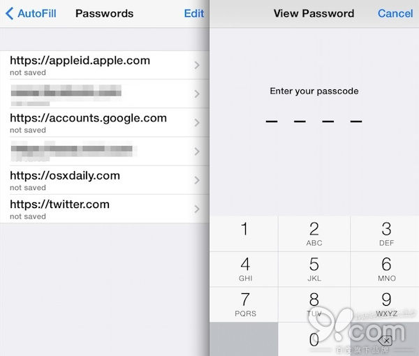 這些密碼只是在用戶查看的時候暫時顯示,只要用戶退出設置後,就回會被加密。蘋果在密碼安全這一快做得非常到位。