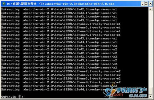 4、點擊absinthe-win-2.0,這時候電腦上會顯示如下命令行,靜待命令行自動結束。