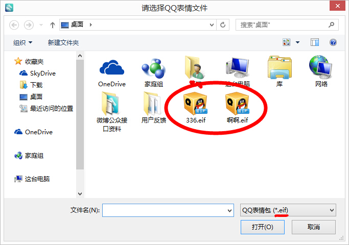 選擇已下載的.eif表情文件,選取想要的表情一鍵導入~