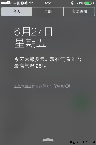 經過上述設置,即可在通知欄中查看當日的天氣狀況了。
