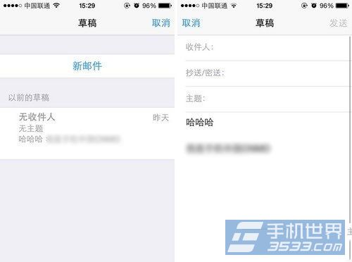 2)這時我們在右下角會發現一個【新建郵件】的按鈕,我們只需要長按這按鈕就可以彈出郵箱草稿頁面了。