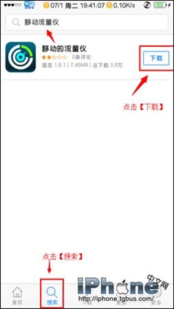 2、進入【PP助手】之後,搜索【移動流量儀】,再點擊【下載】,最後安裝。