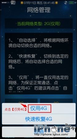 6、點擊【僅用4G】。這時就鎖定使用4G網絡了。
