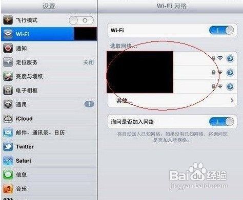 之後我們即可在右側看到可用的Wifi無線網絡列表(前提是你iPhone5附近有無線網絡,並且信號范圍之內)