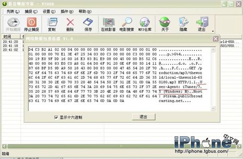 還有就是ITUNES U,方法和下載PODCAST沒有任何區別,只是在嗅歎專家裡發現的是MP4或者MOV文件,還有就是在進行這件事情的同時千萬別打開別的網頁,否則你會區分不開哪個才是你要找的文件,不過萬一在沒注意的情況下你的嗅歎專家也找到了別的文件來干擾,我教你一招可以區別開哪個才是真正的文件,點查看包數據,然後看見我這個紅色標出來的東西才是,這也就是為什麼剛才我要登陸服務器的時候輸入用戶名了。