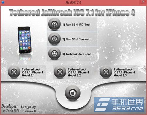 等到窗口都關閉以後,手機會重啟,然後出現USB鏈接iTunes的圖案,這時按照你的手機model選擇越獄工具上的橫排按鈕,model 可以在手機背面查看。